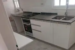 Balcón con vista abierta. Baño principal y toilette. Cocina tipo americana, con desayunador y mesada de granito negro; lavadero incorporado, alacenas y bajo mesadas de melamina. Grifería FV, Sanitarios línea roca modelo Mónaco.